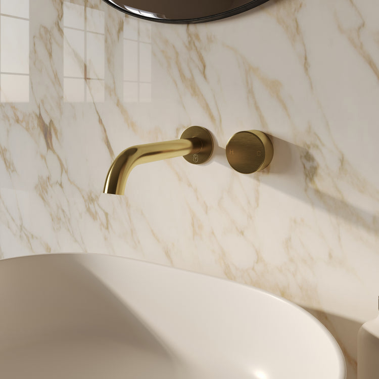 Tropea Wall Spout & Mixer Set - Brushed Brass